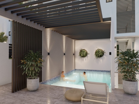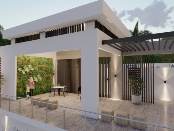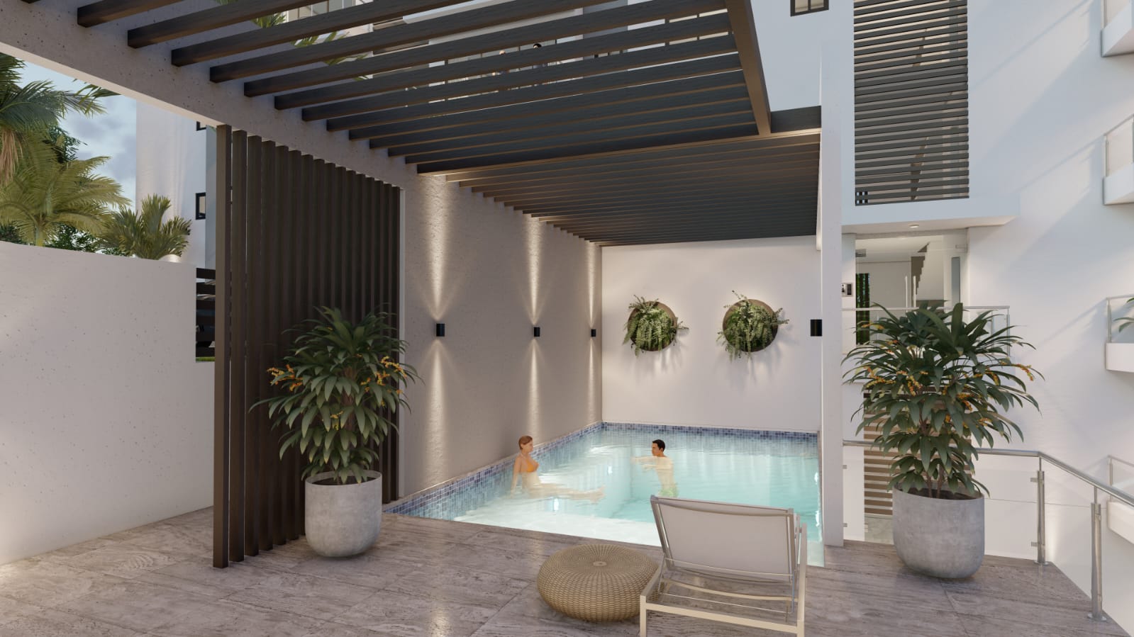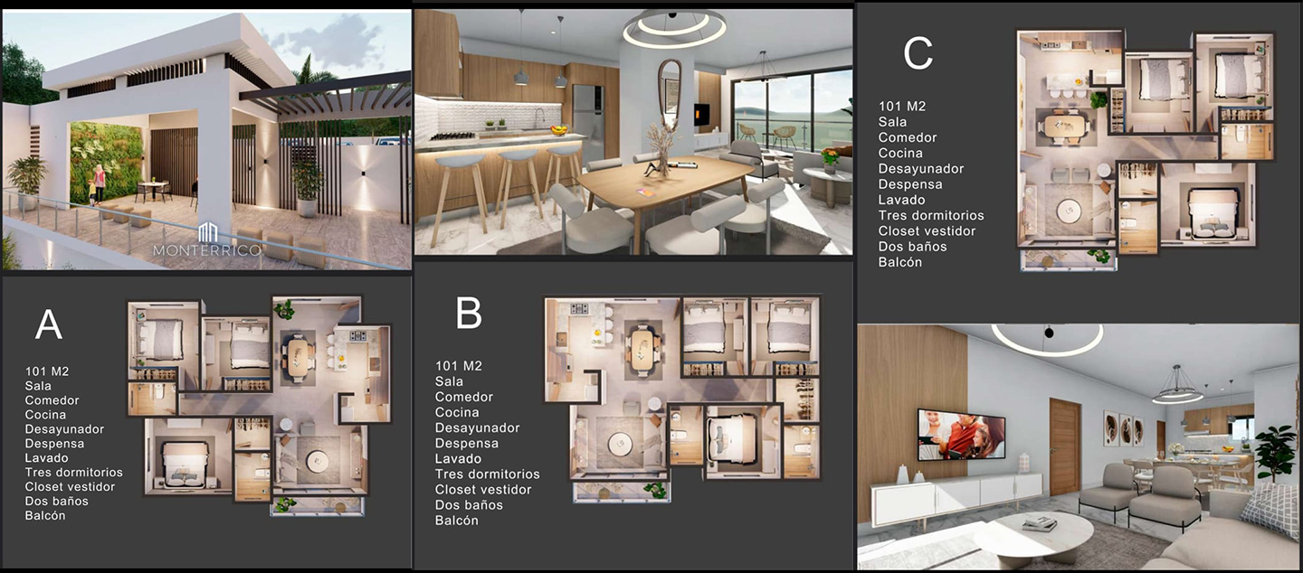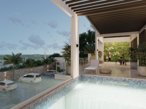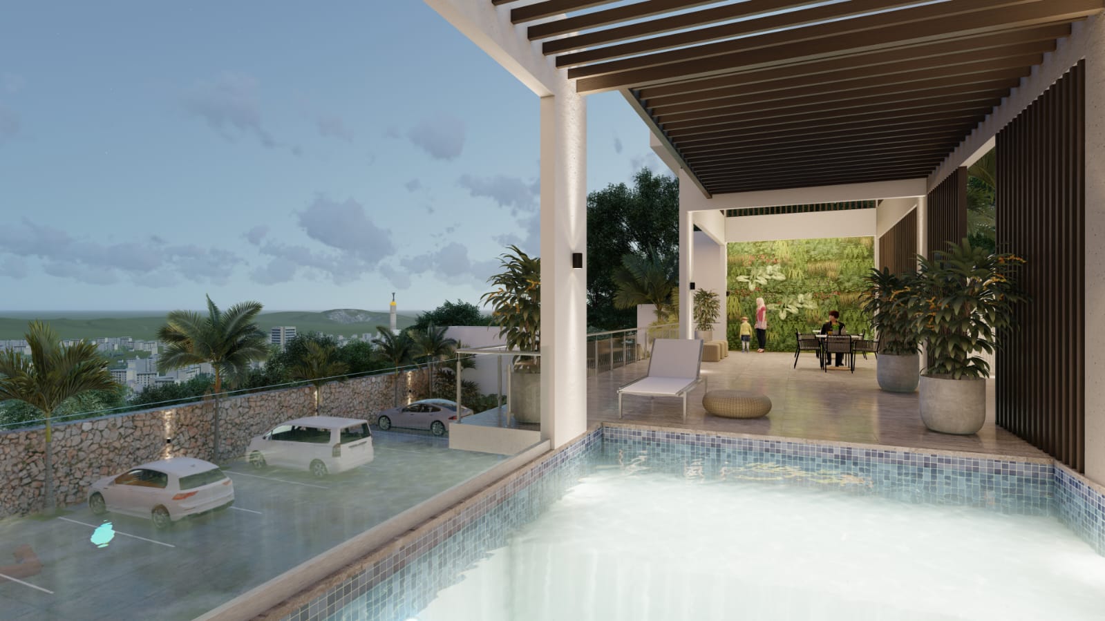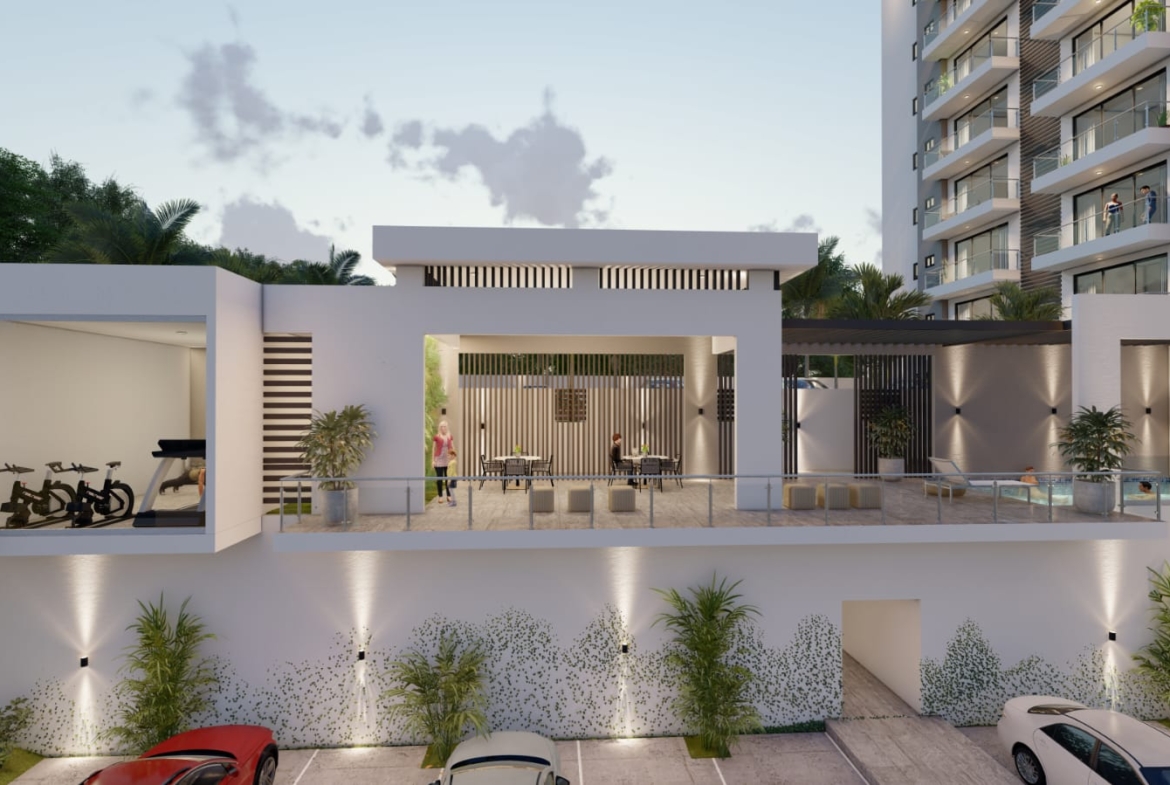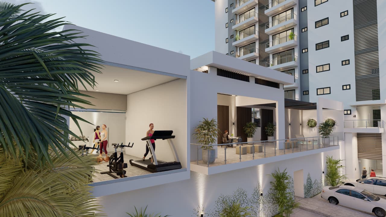 Edificio residencial con tres apartamentos por nivel, distribuidos en diez pisos, para un total de veintinueve unidades. La propiedad destaca por sus exclusivas amenidades, entre las que se incluyen ascensor, piscina, gimnasio, lockers y vistas panorámicas de 360 grados a la ciudad de Santiago, resultado de su ubicación estratégica en una de las áreas más elevadas de la ciudad.